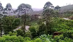 'Lovers Leap' is a spectacular waterfall set among tea plantations a short walk from the town of Nuwara Eliya. It falls a height of 30m in a long cascading sheet of water. It is said that it is named after a young couple who decided to be bound together forever by jumping off the cliff to their demise.[5]