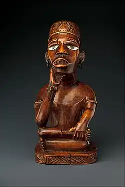 ![]() Seated Male Figure, Angola or Democratic Republic of the Congo, Kongo peoples, Kakongo group (MET, 1996.281) | |