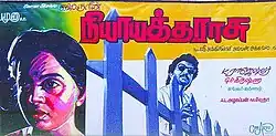 Nyaya Tharasu (transl. Scales of Justice)[1] is a 1989 Indian Tamil-language film, directed by K. Rajeshwar, making his directorial debut, starring Nizhalgal Ravi and Radha. It is a remake of Malayalam film Panchagni.[2] The film revolves around a woman who puts her commitment to social activism above everything else, including her love for an adoring man.