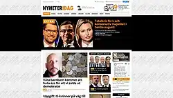 Nyheter Idag (News Today) is a Swedish-language online newspaper. The magazine was founded in February 2014 by Chang Frick and Jakob Bergman, and they say their news reports focus on "politics, gossip, social media and foreign news". The publication describes itself as based on libertarian principles, and the employees have a background in different organizations.[3] Expo grouped Nyheter Idag with "right-wing populist and far-right alternative media",[4] but also stated that it was the news site most difficult to fit into that mold.[4] It has been labelled a racist site by some pundits.[5][6][7][8][9]