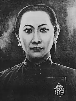 Nyi Ageng Serang was awarded the title National Heroine of Indonesia through Presidential Decree number 084/TK/1974 on 13 December 1974.[6][10] One of her grandsons, Raden Mas Soewardi Soerjaningrat, is also a national hero.[6] Her name is used for the building of the Culture and Museum Office (Dinas Kebudayaan dan Permuseuman) in South Jakarta.[11]
