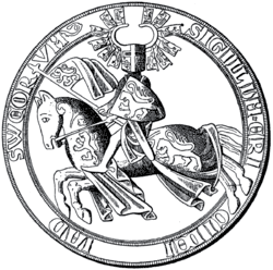 King Magnus Ladulås died in 1290 leaving three minor sons. Birger Magnusson was the successor to the throne, but was only ten years old. In this time Sweden was governed by a council of regents, led by Birger's guardian, marshal Torgils Knutsson.[2] Even after Birger reached majority and married Martha of Denmark, king Erik Menved's daughter, Torgils remained the real ruler of the realm.[3] In 1302 Birger was crowned king in Söderköping and he came into the inheritance of his father. His brothers Eric and Valdemar became dukes of Södermanland, and of parts of Uppland and Finland, respectively. It is probably only at this time that Birger gained any real political power, even if the regency led by Torgils still had some control.[2]