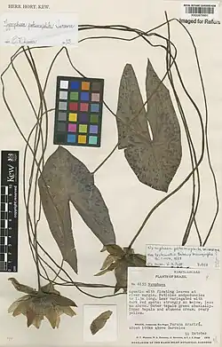 | Preserved herbarium specimen of Nymphaea potamophila Wiersema in the collection of the Royal Botanic Gardens, Kew | |