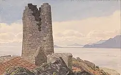 However, others' concerns were justified, as it turned out that Cadiz was not visible from the tower due to the elevation of intervening mountains.[2][12] Not long after the tower's construction, it was hit by lightning during a violent storm and severely damaged. One of the tower's sentinels died in the lightning strike.[1][12][17] By 1811 the tower had garnered the nickname of "O'Hara's Folly", bestowed by the garrison.[1][11][17] O'Hara's Tower was in ruins through much of the remainder of the 19th century.[12][17]
