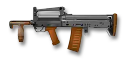 - OTs-14-4A-01 – Rifle configuration with a short barrel and a vertical foregrip.[1]