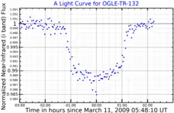 - ^ Adams, E. R.; López-Morales, M.; Elliot, J. L.; Seager, S.; Osip, D. J. (February 2011). "Transit Timing Variation Analysis of OGLE-TR-132b with Seven New Transits". The Astrophysical Journal. 728 (2): 1–9. arXiv:1012.3365. doi:10.1088/0004-637X/728/2/125. Retrieved 9 April 2025.