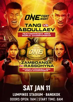 - ^ "Tang vs. Abdullaev, Zamboanga vs. Rassohyna World Title Bouts to Headline ONE Fight Night 27". ONE Championship – The Home Of Martial Arts. 2024-11-15. Retrieved 2024-11-16.