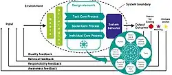 Throughout the social core process, the humans in an organization work towards the goals of a system. In the SCP, the individual core process and the task core process are linked such that synergy effects are yielded from collaboration.