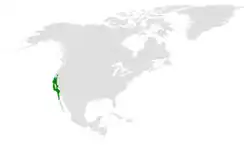 This species lives year-round on the Pacific slope, resident from southern Oregon south through California west of the Sierra Nevada to Baja California, but its range surrounds the central San Joaquin Valley. It prefers open woodlands of warm, dry oak and oak-pine at low to mid-elevations but can also be found in forests as long as adequate oak trees are present.
