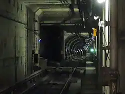 The Oakland Wye is an underground flying wye junction in downtown Oakland, California which serves the Bay Area Rapid Transit (BART) system. Trains can switch between (a) the northbound Richmond or Antioch lines (first station: 12th Street Oakland City Center, underground), (b) the westbound San Francisco lines (first station: West Oakland, elevated), and (c) the southbound Berryessa or Dublin/Pleasanton lines (first station: Lake Merritt, underground).[1][2][3][4]: 45–46 The Oakland Wye is the center of the BART system (all mileposts measure distance from the wye),[5] and is a bottleneck for the whole system because every regularly scheduled BART train (except for the Oakland Airport Connector and eBART) passes through it.[1][6]