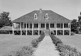 The mansion was built in 1830 for Narcisse Prudhomme, who held as many as 104 enslaved people on the property.[4] After his death in 1859, the plantation was inherited by his son, Achille Prudhomme.[4] Although the plantation survived the Civil War of 1861–1865 intact,[4] after Achille's death, the land was divided into parcels by his heirs and sold off.[4] In 1916, Charles Edgar Cloutier, the husband of Adeline Prudhomme, a great-grandniece of Narcisse Prudhomme, purchased the property.[4]