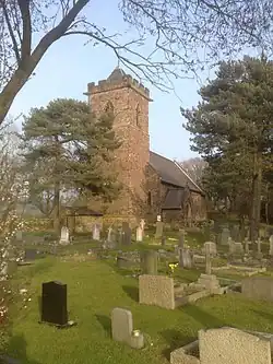 The church, erected in 1815 and consecrated on the day of Waterloo, was rebuilt and enlarged in 1883, it is of forest stone in the Early English style and has an embattled western tower with a small pyramid roof. A feature of the church is a collection of French lances mounted on the north wall of the church, said to have been retrieved from the field at Waterloo.