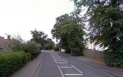 The village is elevated from the London Basin and has gentle slopes down to the old village in a slight dip and to Walton-on-Thames. The roads are characterised by many avenues and garden-fronted properties surrounded by parkland, no intersection by any major roads, with low rise apartments being a relatively common feature. The Weybridge Club spa resort and Broadwater lie to the north of the Oatlands Park Hotel within the lower London Basin. Several fine elevated views can be enjoyed from apartments on Oatlands Drive, reflected in names such as Ridgemount, Broadwater Place, Lakeside, Oakhill Gardens and Tower Grove. The architecture across the village is predominantly of classical, Georgian inspiration to complement the small group of terraced houses dating from the 18th and 19th centuries and grander, detached Georgian houses bordering on the approach to Monument Hill, which links Oatlands to Weybridge town centre. There are no dual carriageways around or within the village.[2] The closest railway station is Walton-on-Thames, 1/2-mile from St Marys, Oatlands church to the south-east of the village, with a 25-minute one stop service in the mornings and evenings to London Waterloo.