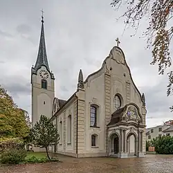 From the 2000 census, 5,920 or 79.4% are Roman Catholic, while 632 or 8.5% belonged to the Swiss Reformed Church. Of the rest of the population, there are 3 individuals (or about 0.04% of the population) who belong to the Christian Catholic faith, there are 29 individuals (or about 0.39% of the population) who belong to the Orthodox Church, and there are 50 individuals (or about 0.67% of the population) who belong to another Christian church. There is 1 individual who is Jewish, and 398 (or about 5.34% of the population) who are Islamic. There are 16 individuals (or about 0.21% of the population) who belong to another church (not listed on the census), 181 (or about 2.43% of the population) belong to no church, are agnostic or atheist, and 224 individuals (or about 3.01% of the population) did not answer the question.[8]