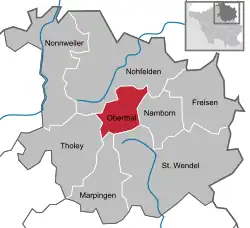 Location of Oberthal within Sankt Wendel district ![]() | |