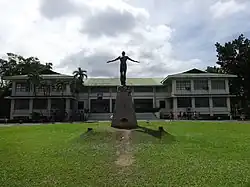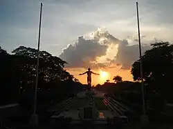 The concrete sculpture, painted to look like bronze, measures 3.5 meters in height, symbolizing the 333 years of Spanish rule in the Philippines.[1] The sculpture is replete with references to selfless dedication and service to the nation, and as Tolentino himself describes it,[2]