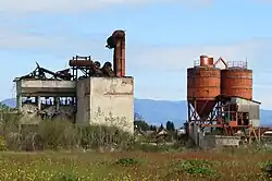 The Gradis construction company started operating a gravel pit in Obrije in 1952.[7] A sizing plant was later built at the site and was used for construction of the Nove Jarše housing development and other needs; it was abandoned in the 1990s.[8] The plant was damaged in a fire on 1 November 2008.[9]