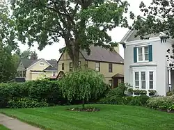 In 1873, the Cincinnati Observatory was erected within the boundaries of the present district,[1] with residential construction beginning in the following year; houses continued to be built until the eve of World War I.[2] When the Cincinnati and Eastern Railway built a nearby rail line in 1882, housing construction began in earnest; the house at 3300 Observatory Place had already been built by Observatory director Ormond Stone in 1877, but most residences were built between 1886 and 1904.[3]: 3 Given the forty-year span over which the houses were constructed, numerous architectural styles are found in the district, including the Neoclassical, the Second Empire, and various other Victorian styles.[4] Despite its varying styles, the neighborhood presents a unified theme — all of the residences feature architectural detailing typical of late Victorian period, and their orientation unambiguously focuses attention on the Observatory: the result is a cohesive late nineteenth century neighborhood, easily distinguished from other streets in the neighborhood.[2] The residences are comparable in size and shape, generally built as two-story single-family houses with similar setbacks,[3]: 4 while the district is surrounded by open land rather than closely packed residential neighborhoods in order to reduce light pollution for the Observatory.[3]: 5