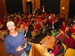 On November 21, 2011, members of Occupy Charlottesville expressed their intention to continue the occupation to Charlottesville City Council. Many asked for the City to suspend the 11 pm curfew. Over 100 supporters packed the chambers in what Councilor David Brown called the best-attended meeting in his eight years on the board. An overflow room was opened for people who could not fit into the council chambers. About 60 people spoke to City Council regarding Occupy Charlottesville, a handful of them against its continued presence.[14] Councilor response followed the public comments portion of the meeting. During this response portion of the meeting Councilor Szakos stated that she "[thinks] that free speech doesn't expire at 11 o'clock. It doesn't expire at Thanksgiving." Szakos was the sole councilor in favor of allowing the occupation to continue in Lee Park despite complaints by some members of the neighborhood.[15] The rest of the council was in favor of the continuation of Occupy Charlottesville, albeit not in Lee Park. A desire was expressed to move the occupation to a new location, approved by the local city government. Mayor Dave Norris expressed his desire to find an alternative location for the occupiers other than a "neighborhood park". Although he expressed general support for the movement, he was resolved to end the Lee Park encampment.