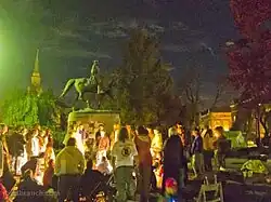 The Occupy Wall Street movement began on September 17, 2011, as a protest against economic and social injustice.[6] Soon thereafter, autonomous satellite protests sprung up across the world, most of them in the United States. In the weeks leading up to the October 15 occupation in Charlottesville, protesters first met at Random Row books on October 5 and again on October 12, for the first Official General Assembly.[7] Among other topics, "they discussed and developed a set of shared values for community members, including social and economic justice, mutual respect, cooperation and non-violence with each other".[8] The occupiers chose to take Lee Park, a public park in the north downtown neighborhood.