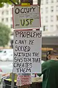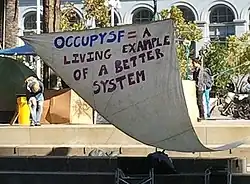 Occupy San Francisco was a collaboration that began with a demonstration event located at Justin Herman Plaza in the Embarcadero and in front of the Federal Reserve building on Market Street in the Financial District in San Francisco, California.[1] It is based on the Occupy Wall Street movement that began in New York City on September 17, 2011 and is one of several "Occupy" protest sites in the San Francisco Bay Area; other sites include Occupy Oakland and Occupy San Jose.