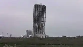 Ocean Tower SPI was an unfinished, 31-story residential skyscraper in South Padre Island, Cameron County, Texas, United States, that was imploded when it was deemed unsafe to remain standing. Construction was halted in May 2008 when cracks formed in the building's supporting columns, and investigations revealed that the core of the skyscraper had sunk by more than 14 inches (360 mm). Though the developers initially vowed to fix the problem, studies discovered that repairs would have been too expensive, and plans for its demolition were announced in September 2009. At the time of its controlled implosion in December 2009 the building weighed 55,000 short tons (50,000 t), and it was the tallest reinforced concrete structure to be demolished in that way. It was nicknamed "Faulty Towers" and "The Leaning Tower of South Padre Island".[1][2]