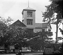Oceania House was built between 1887 and 1904 using local labour, with bricks imported from Scotland.[1][2] Soil for the grounds was shipped from Christmas Island.[3] It was severely damaged by a cyclone in 1909.[1] It underwent substantial renovations in the 1940s, including the removal of a tower.[4] In 1951, it was described as a "ten-bedroomed mansion with four bathrooms, a ballroom, billiard-room, and ten acres of garden".[5] Oceania House hosted a "garden party" for Queen Elizabeth II during the 1954 Australian royal visit.[6]