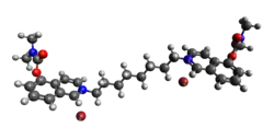 5-Hydroxyisoquinoline and dimethylcarbamoyl chloride is heated on a steam bath for 2 hours. The mixture is then cooled and treated with benzene. The resulting solid is then dissolved in water. Sodium hydroxide is added to make the solution basic. The solution is extracted with chloroform and then dried with magnesium sulfate. The solvent is evaporated and the solid residue is then recrystallized from petroleum ether. The resulting product, 5-dimethylcarbamoxyisoquinoline, is then mixed with 1,8-dibromooctane in acetonitrile and refluxed for 8 hours. After cooling, the precipitate is filtered and recrystallized from acetonitrile. The product is then dried in vacuo for 14 hours at room temperature, resulting in the final product.[3]