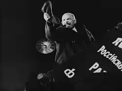 October was one of two films commissioned by the Soviet government to honour the tenth anniversary of the October Revolution (the other was Vsevolod Pudovkin's The End of St. Petersburg). Eisenstein was chosen to head the project due to the international success he had achieved with Battleship Potemkin (1925).[2] Nikolai Podvoisky, one of the troika who led the storming of the Winter Palace, was responsible for the commission. The scene of the storming was based more on The Storming of the Winter Palace (1920), a re-enactment involving Vladimir Lenin and thousands of Red Guards, witnessed by 100,000 spectators, than the original occasion, which was far less photogenic. This scene became the legitimate, historical depiction of the storming of the Winter Palace owing to the lack of print or film documenting the actual event, which led historians and filmmakers to use Eisenstein's recreation. This illustrates October's success as a propaganda film.[3]