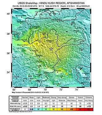 - ^ "7.5 magnitude earthquake hits Hindu Kush in Afghanistan". The Times of India. 26 October 2015.