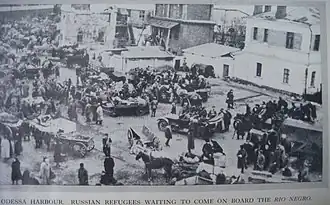 ![]() Refugees of Odessa and White Army troops trying to flee from the Red Army. | |||||||||
