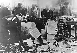 The Black Hundreds explicitly linked their support for the tsar with antisemitism. Their nationalist rallies and marches, like the one that preceded the main pogrom on October 19, enjoyed the tacit blessing of the local authorities, and were used by advocates of the autocracy to support the government and undermine the concessions made as a result of the October revolution.[2][23] This ideology framed anti-Jewish violence as a way to "strengthen the foundation of tsarist rule" and punish what they perceived as "treasonable behavior" such as desecrating portraits of the tsar or forcing bystanders to pay tribute to revolutionary flags.[10] Despite official denials, the presence of these groups raised the level of violence considerably.[50] Inadequate policing contributed to the rise of the far-right.[51] "Riot specialists," some of whom enjoyed official support, opportunistically exploited tensions to channel violence toward Jews.[52]
