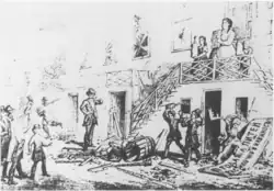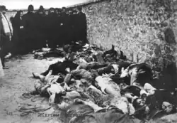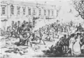 The Bolshevik Piatnitsky who was in Odessa at the time recalls what happened: "There I saw the following scene: a gang of young men, between 25 and 20 years old, among whom there were plain-clothes policemen and members of the Okhrana, were rounding up anyone who looked like a Jew—men, women and children—stripping them naked and beating them mercilessly... We immediately organised a group of revolutionaries armed with revolvers... we ran up to them and fired at them. They ran away. But suddenly between us and the pogromists there appeared a solid wall of soldiers, armed to the teeth and facing us. We retreated. The soldiers went away, and the pogromists came out again. This happened a few times. It became clear to us that the pogromists were acting together with the military."[58]