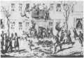 The 1871 pogrom started as a street fight during Greek Orthodox Holy Week, turning into a serious riot and leading to destruction of Jewish property and 600 arrests. Censorship limited the ability of Odessa newspapers to report on the events, but the press in Saint Petersburg published sympathetic accounts. [12] Rumors were spread that Jews had damaged or stolen a holy cross. There were also "rumor-memories" regarding Gregory V, accompanied by lithographs distributed of him, that "people of a different faith" were going to steal his remains and stop them from being repatriated to Athens. [13] Jews would display Christian icons as a bid to avoid damage to their property, a gambit that was sometimes successful.[14] Russian and Jews alike would display icons in windows and doors of shops and stalls to deter pogromists, and would sometimes be granted mercy if they agreed to wear a cross. Pogromists broke windows to test the boundaries, and as a first stage of the pogrom, before intensifying the rampage. They attacked and looted Jewish as well as Christian businesses, beat policemen, and even threatened priests. They then smashed furniture and belongings inside homes and businesses. Cossacks, called in to restore order, delayed and took several days to take action, and their first action was to disperse the Jews who were protecting their property. They then reportedly let the pogromists proceed, short of murder, despite orders to disperse them and send them home.[13]