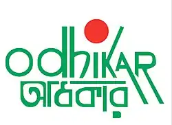 Odhikar (Bengali: অধিকার) is a Bangladesh-based human rights organization, that was founded in October 1994.[2] It is a member of the International Federation for Human Rights (FIDH).[3] It has been publishing an annual activity report since 2003.[4] Odhikar's work has been cited by Human Rights Watch in their 2011 World Report on Bangladesh.[5] The goal for establishing Odhikar was to develop human rights alertness and observing violations in Bangladesh.[6]
