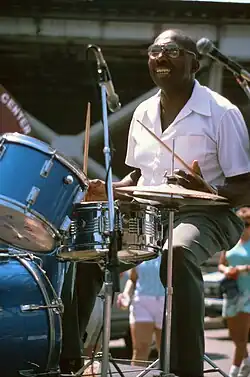 Noted for his use of the cowbell, bass drum pedal, and extended cymbal and drum rolls, Payne's double-shuffle drumming technique was much copied and was used by Fred Below and Sam Lay.[2] The technique called for Payne to use both hands to produce the shuffle effect.[3]