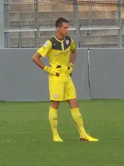 Born in Stuttgart, Vlachodimos started his football career at VfL Wangen before joining VfB Stuttgart's youth system at the age of seven.[3] Having progressed through the clubs' youth ranks, he then made his debut for VfB Stuttgart II on 25 February 2012 in a 1–0 loss to 1. FC Heidenheim in 3. Liga.[4] At the end of the season, he signed his first professional contract with the club, penning a deal until June 2015.[5] Two years later, he extended his contract with VfB until June 2017.[6] Having made over 50 appearances for VfB Stuttgart II, Vlachodimos was afforded his Bundesliga debut against Eintracht Frankfurt on 29 August 2015. With back-up 'keeper Mitchell Langerak out injured, Vlachodimos was included in Stuttgart's match day squad and was brought on as a substitute following the sending off of first-choice goalkeeper Przemysław Tytoń.[7] He made three appearances in total for the senior side but by the end of 2015 had fallen out of favour of new club manager, and former VfB Stuttgart II coach, Jürgen Kramny. Vlachodimos voiced his disapproval of the situation in an interview with German news publication Kicker in December and the following month joined Greek Super League side Panathinaikos where he was reunited with his brother, Panagiotis, who had joined the club earlier in the month.[8][9]