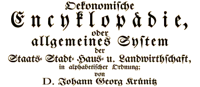 - originally: Oekonomische Encyklopädie, oder allgemeines System der Land- Haus- und Staats-Wirthschaft in alphabetischer Ordnung ("Economic Encyclopaedia, or general system of agriculture, domestic and state economy in alphabetical order")