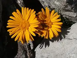 Oedera capensis, the cape perdekaroo,[2] is a prickly shrublet belonging to the family Asteraceae. It has stems that branch only at the foot and are densely set over their entire length with narrowly triangular leathery leaves with a sharp tip at approximately right angles to the stem. At their tip are what at first sight appears to be a single flowerhead with yellow ray florets and yellow disc florets. In fact, these are mostly nine densely cropped heads, as is suggested by the nine domes of the "disc" of the composite head, the untidy arrangement of the ray florets, and becomes very clear when cutting through the composite head.[3] It is an endemic of the south of the Western Cape province in South Africa.