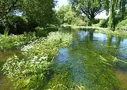 The conservation importance of river water-dropwort is very high: it is entirely confined to clear, unpolluted river systems; it has a very restricted global distribution; and it is rare and decreasing across its range. In these regards, it is similar to highly protected species such as floating water-plantain. In Britain, it is classed as Least Concern, although it of international importance.[13] Many of its sites are classified as Sites of Special Scientific Interest, such as the rivers Avon, Itchen, Kennet and the Moors River and river water-dropwort is always considered one of the key species in the designations.[14] It is considered an axiophyte in any British county.[15]
