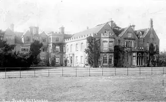 Parts of the manor house (surviving pre-1954 demolition) dated from the reign of King Henry VIII and were said to be connected with Coventry Priory, but most is 19th century.[3] In 1954 about three quarters of the house was demolished,[4] including the entire Tudor south block comprising servants' quarters, and on the north side the 17th century dining room and morning room,[5] to form the present smaller house, comprising the single south-facing entrance block with Strawberry Hill-Gothic style battlemented facade and Tudor-arched windows, containing the drawing room and inner hall. It is in private occupation and not open to the public, although the park is occasionally used for equestrian events. The tranquility of the estate has been marred in recent years by the encroachment of the suburbs of Leamington Spa.[6]