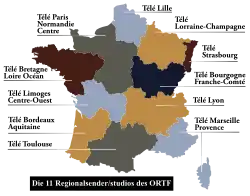 The ORTF also operated 11 regional television services that provided programming for all three channels: