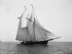 He had several yachts including a schooner, Norseman that was designed by William Townsend and built in 1881 at the Richard & Cornelius Poillon shipyard in Brooklyn.[10][11] From 1893 he also chartered Lillie Langtry's yacht White Ladye.[12] His final yacht was named Mayflower and was designed by George Lennox Watson in 1896 and built on the Clyde (Scotland) by J & G Thompson. After Goelet's death the yacht was sold to the US Navy and became USS Mayflower.[5] Goelet's brother, Robert, had a similar yacht built at the same time, at a different Clydeside shipyard. This later became USS Nahma.[13]