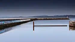 Ogden Point was named after Peter Skene Ogden (1790–1854), who was a prominent trader and explorer for the Hudson's Bay Company.[3] The piers at Ogden Point were built in the early 20th century by the city of Victoria in anticipation of a growth in shipping due to the opening of the Panama Canal.[4] In 1916 the US Hydrographic Office published a Coast Pilots guide that referred to the piers as the "Ocean Docks".[5] That edition of Coast Pilots also mentioned that the breakwater south of Pier A was under construction in 1915.[5] The breakwater was completed in 1916 and the piers were completed in 1918.[3] Later in the century Victoria Machinery Depot built some of the first vessels for BC Ferries and other customers in the 1960s using Ogden Point for the larger ships.[6]