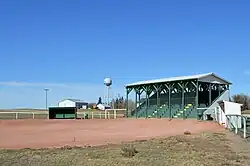 The grandstand was originally built in the 1920s by the Ogema Agricultural society. It is currently the oldest community grandstand in Western Canada, and it is still the site of the Ogema Agricultural Society Annual Fair day, which is the longest running agricultural fair in Saskatchewan.[46] In 2004, the grandstand was dedicated to Arleene Johnson Noga, a women’s American baseball player who was raised in Ogema. This grandstand and field are home to the Ogema Colts, a men's baseball team in the Borderline Fastball League.[47]