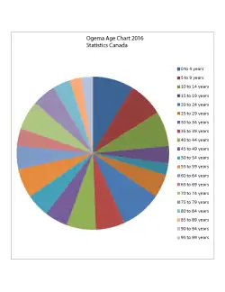 In the 2021 Census of Population conducted by Statistics Canada, Ogema had a population of 383 living in 155 of its 192 total private dwellings, a change of -5% from its 2016 population of 403. With a land area of 1.33 km2 (0.51 sq mi), it had a population density of 288.0/km2 (745.8/sq mi) in 2021.[36]