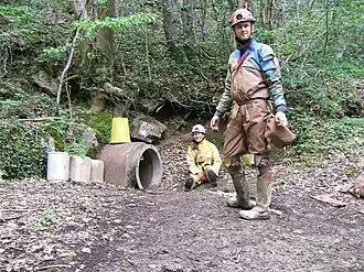 Ogof Nadolig is a cave in the Alyn Gorge near Cilcain, Flintshire, Wales. It is mostly crawling, 300 metres (980 ft) long, and ends with a shaft up to the surface and a locked manhole cover.