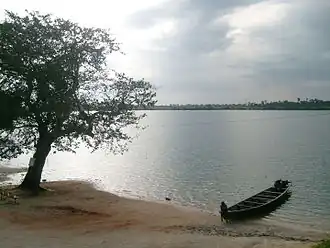 Oguta Lake is a lean 'finger lake' formed by the damming of the lower Njaba River with alluvium.[2] it is the largest natural lake in Imo State, Southeastern Nigeria;[3] within the equatorial rainforest region of Niger Delta.[3][4] Oguta Lake's catchment area comprises the drainage area of the Njaba River and a part of the River Niger floodplain in the region south of Onitsha.[3][5]