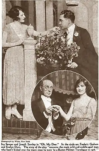 Oh, My Dear! was a Broadway musical comedy in two acts with book and lyrics by Guy Bolton and P. G. Wodehouse, and music by Louis A. Hirsch. The play was produced by William Elliott and F. Ray Comstock and opened under the direction of Robert Milton and Edward Royce at the Princess Theatre on West 39th Street in New York City on November 27, 1918. Oh, My Dear! had a run of 189 performances, with the final curtain falling on May 10, 1919.[1] The musical takes place at Dr. Rockett's Health Farm in the state of New York.[2]