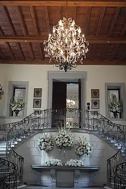 Kahn built Oheka in response to Jews being forbidden entry to clubs and golf courses in Morristown, New Jersey, and because Cedar Court, a previous country home of Kahn's, was virtually destroyed by fire in 1905.[4] He was determined to build a fireproof building, so he had his architects, Delano and Aldrich, design it in steel and concrete, making it one of the first totally fireproof residential buildings. Two years were spent building an artificial hill on which to place the home, giving it views of Cold Spring Hills and Cold Spring Harbor.[5]